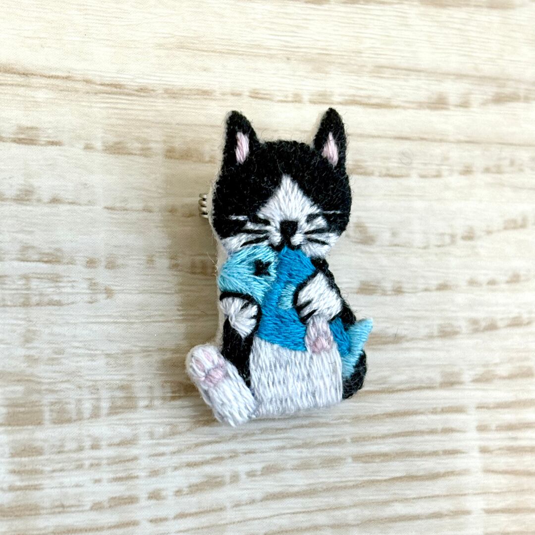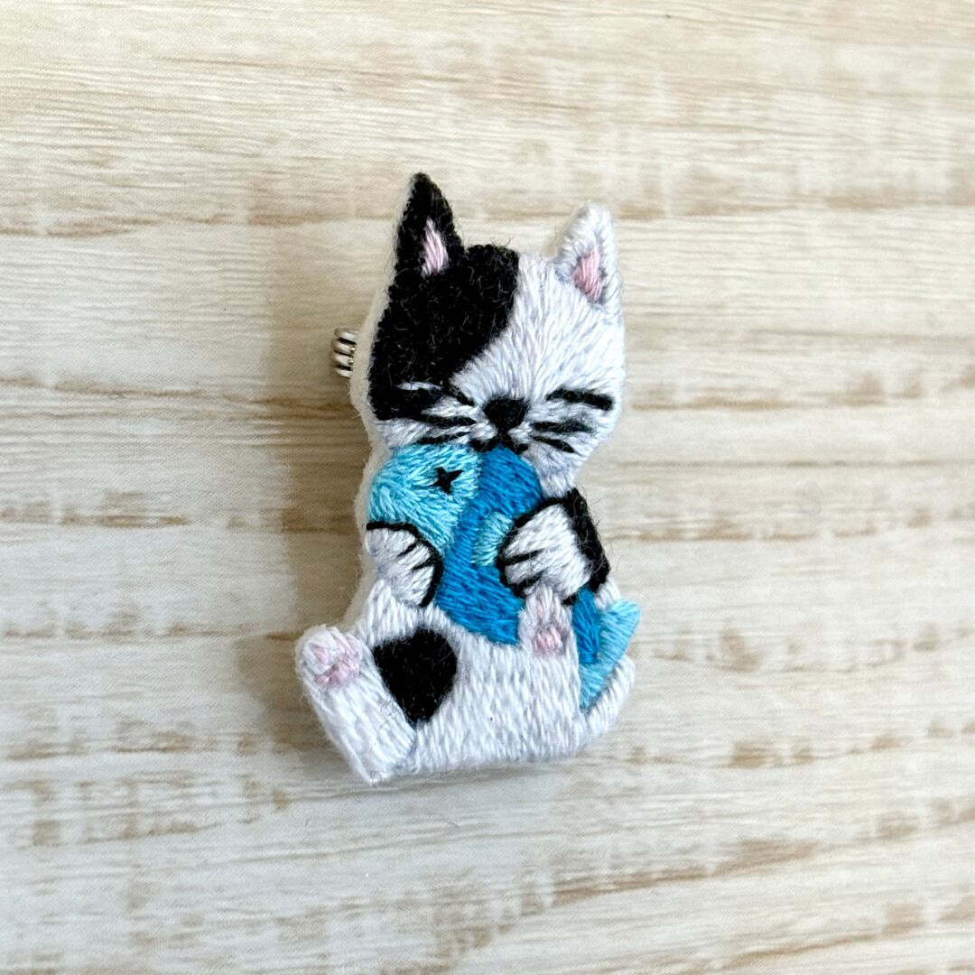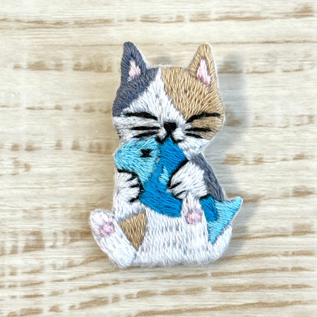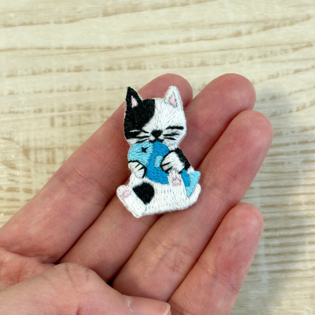 刺繍ブローチ【食いしん坊な猫】1.5cmピン
