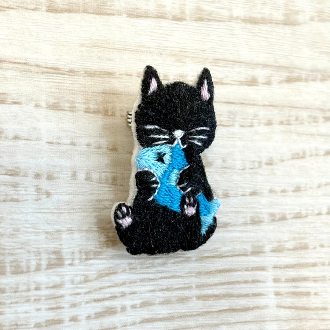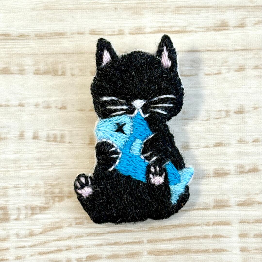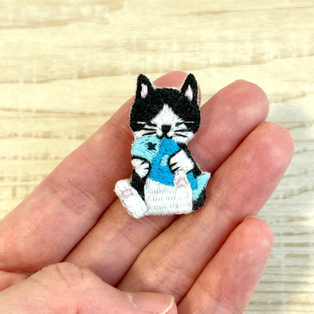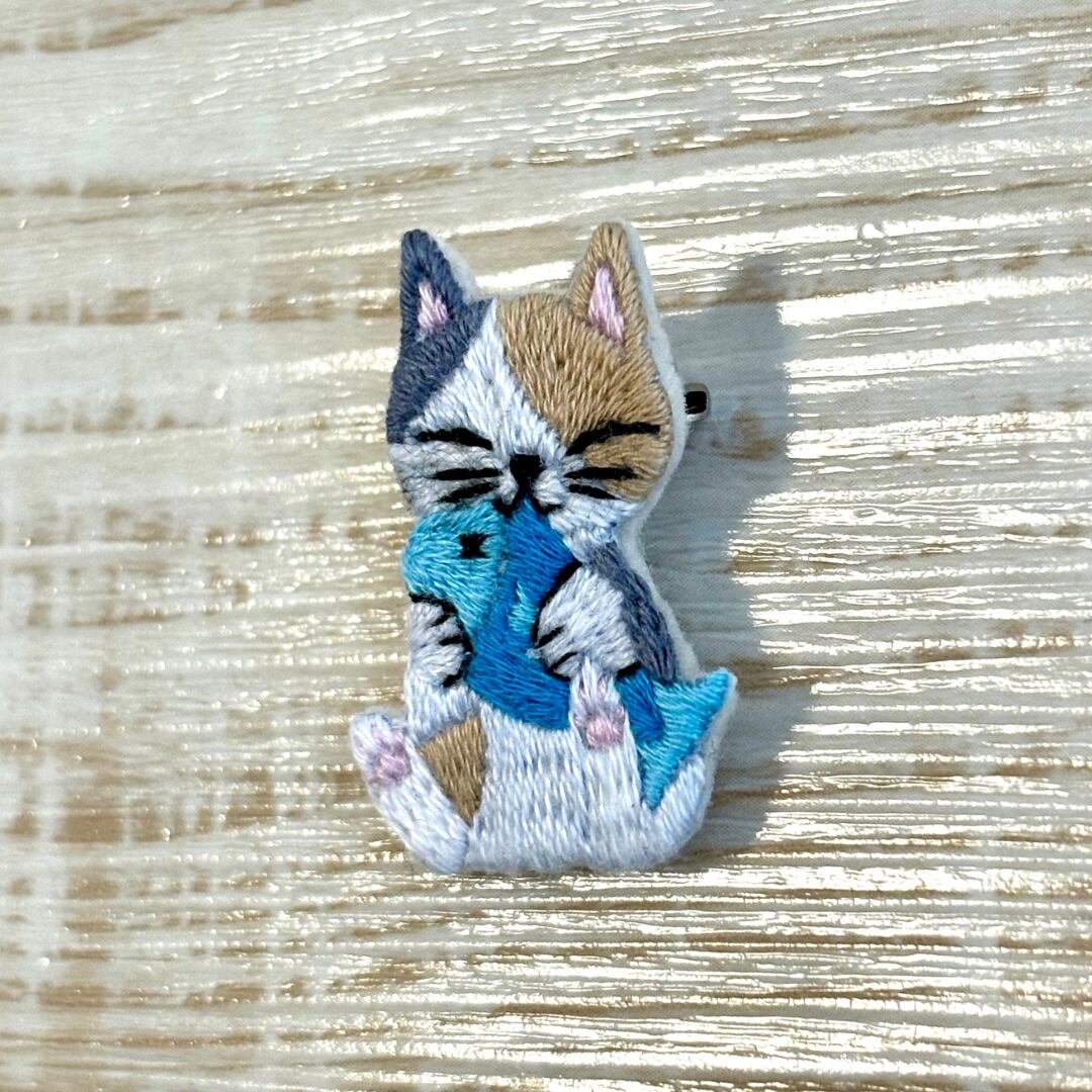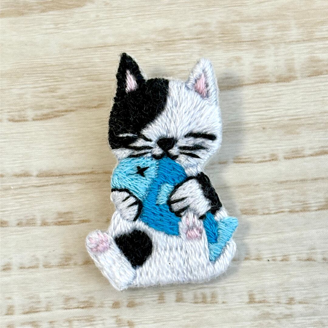 刺繍ブローチ【食いしん坊な猫】1.5cmピン