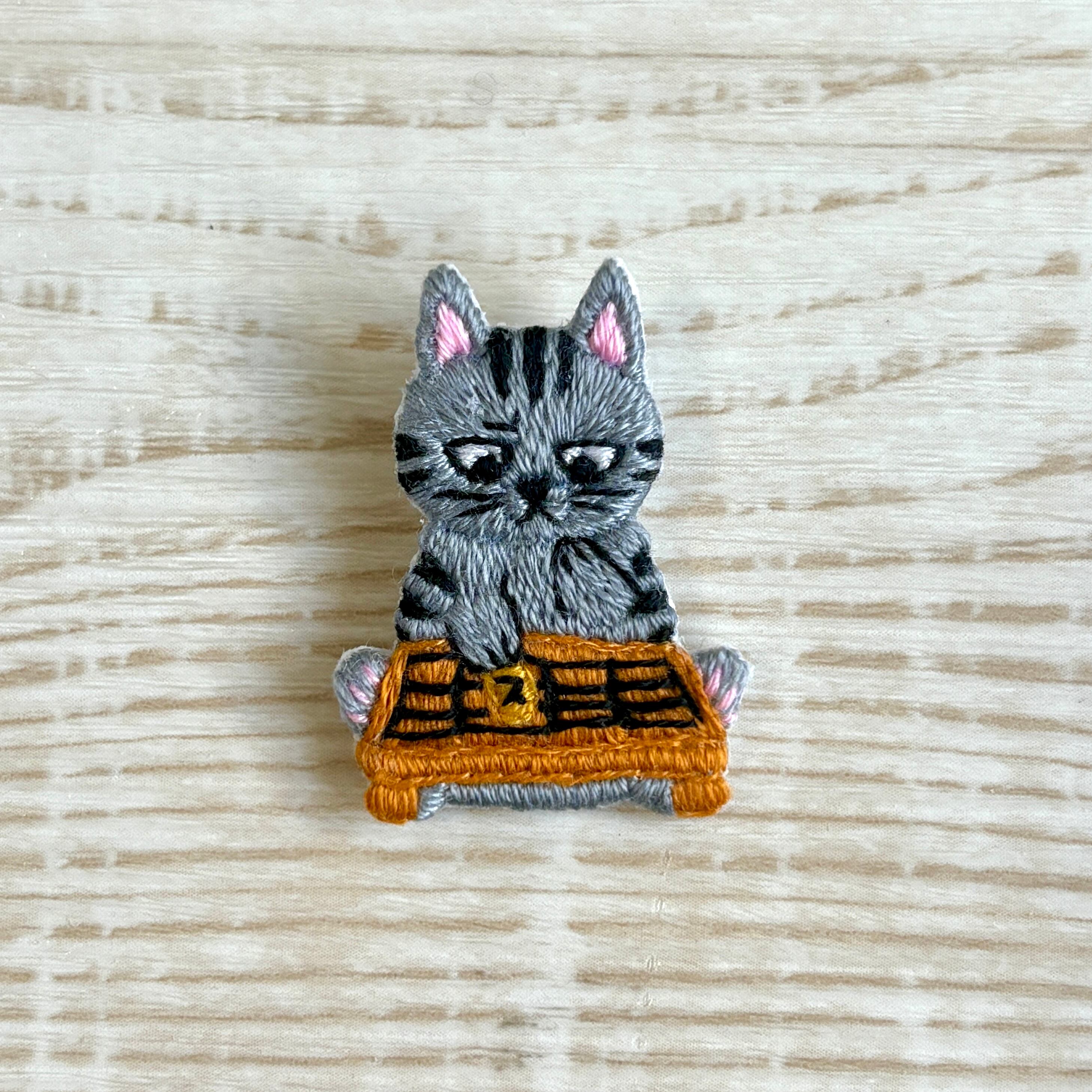 刺繍ブローチ【将棋猫】1.5cmピン