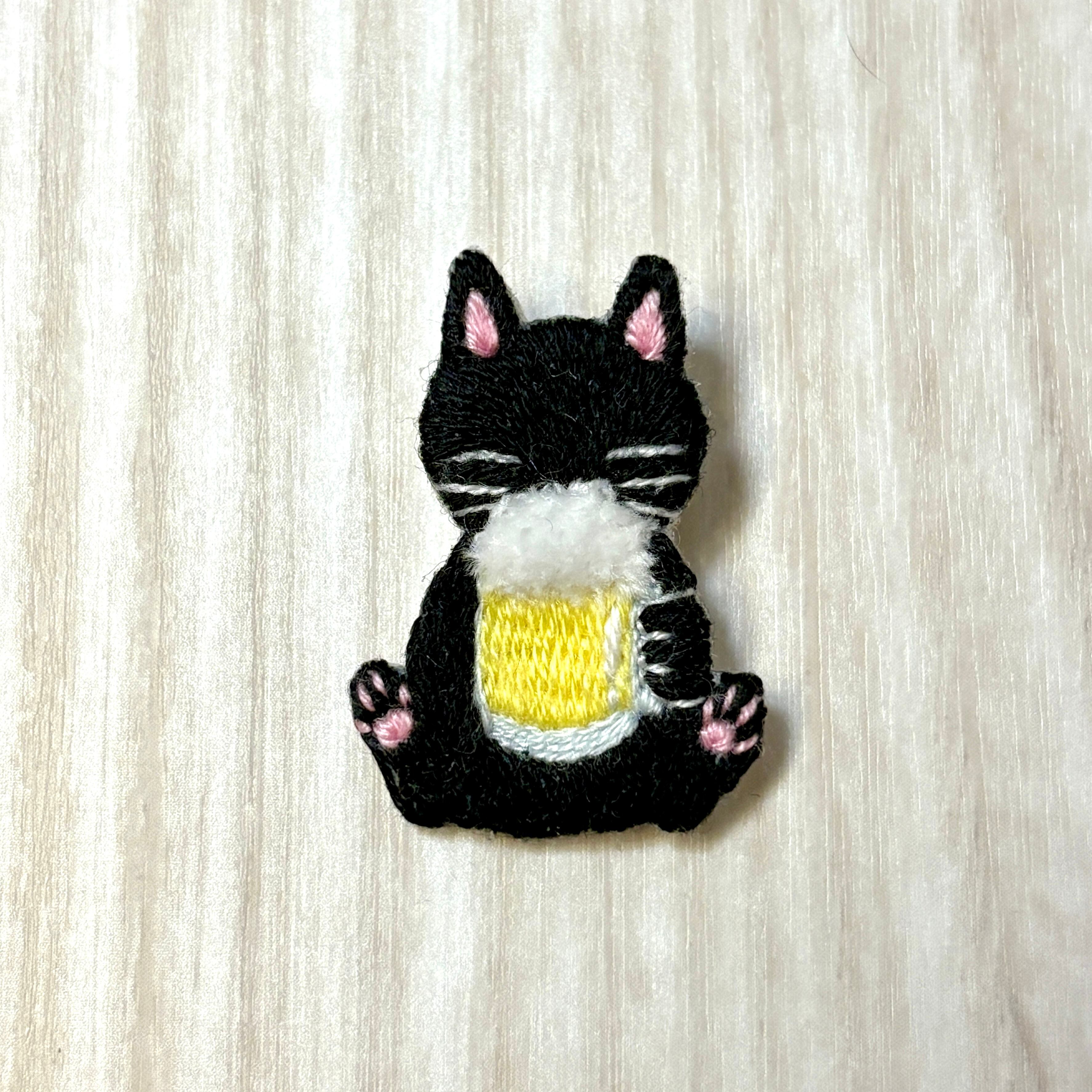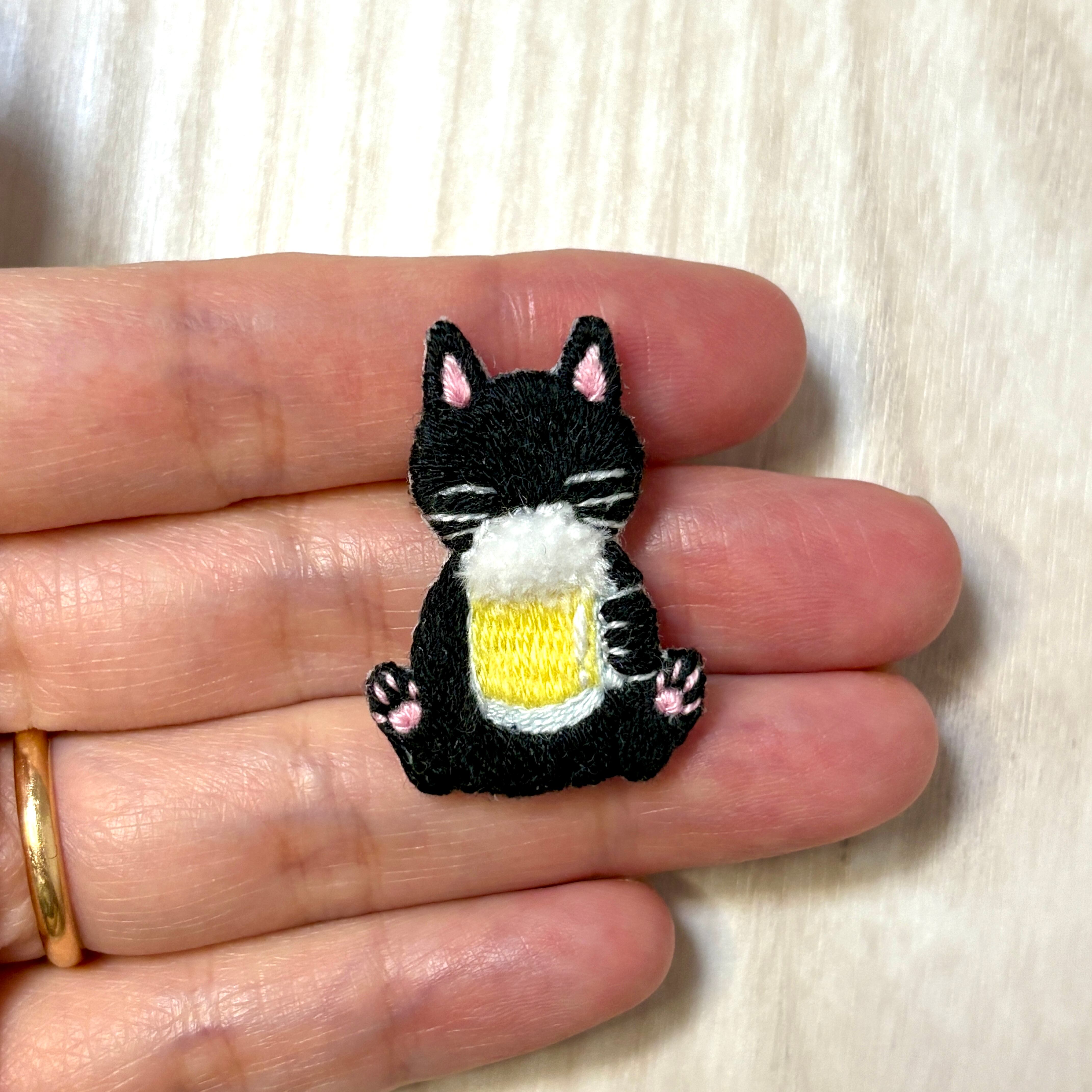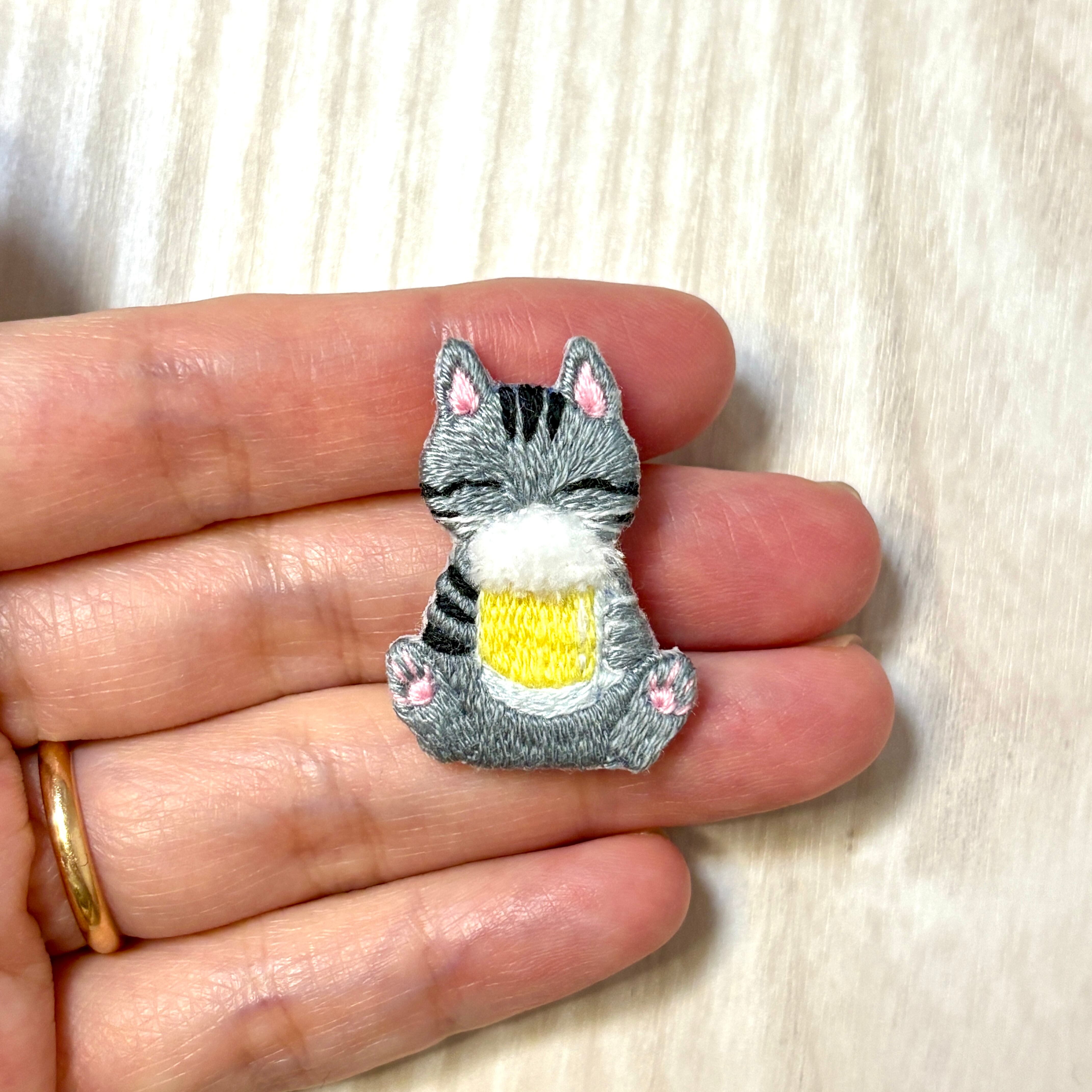 刺繡ブローチ【ビールを飲む猫】1.5cmピン