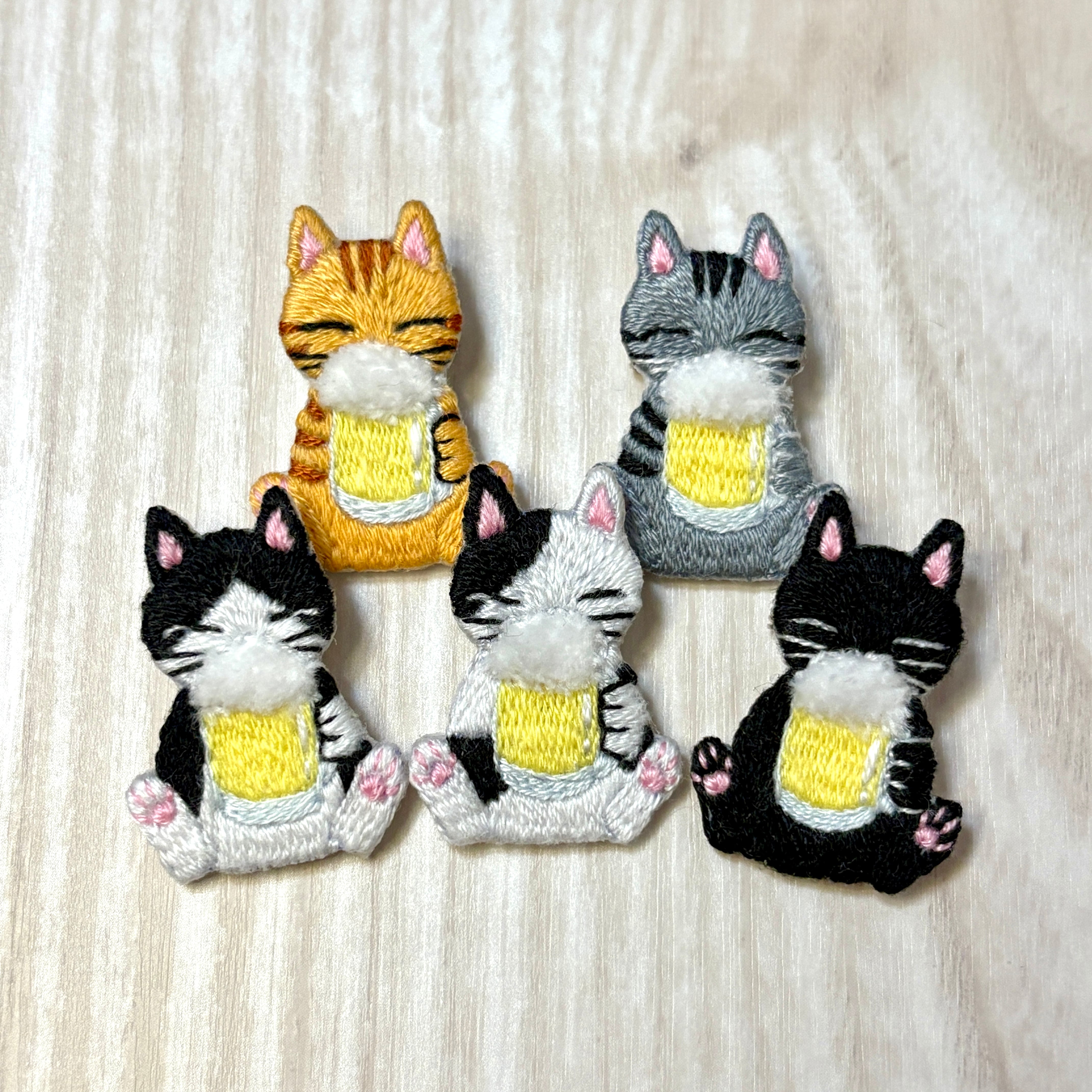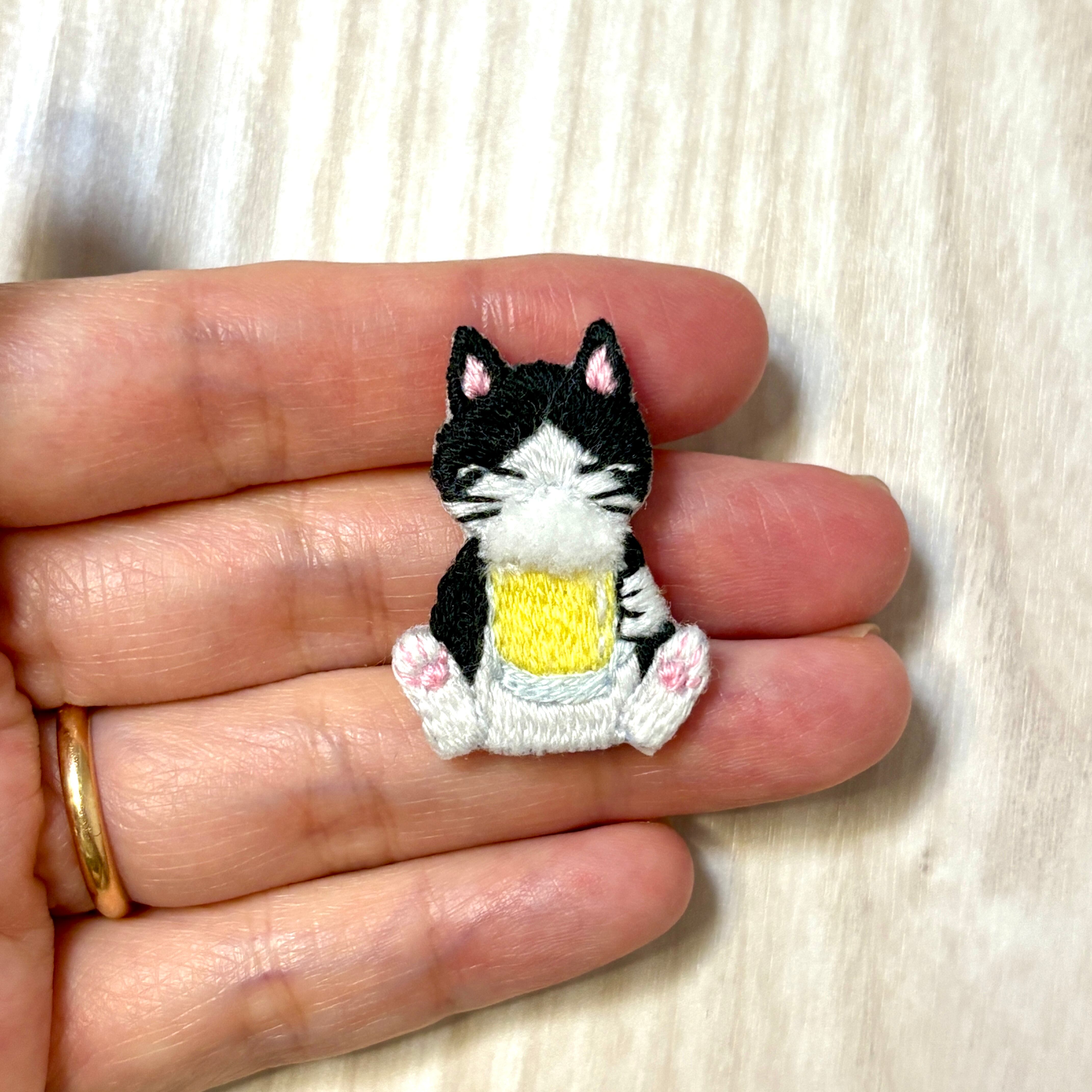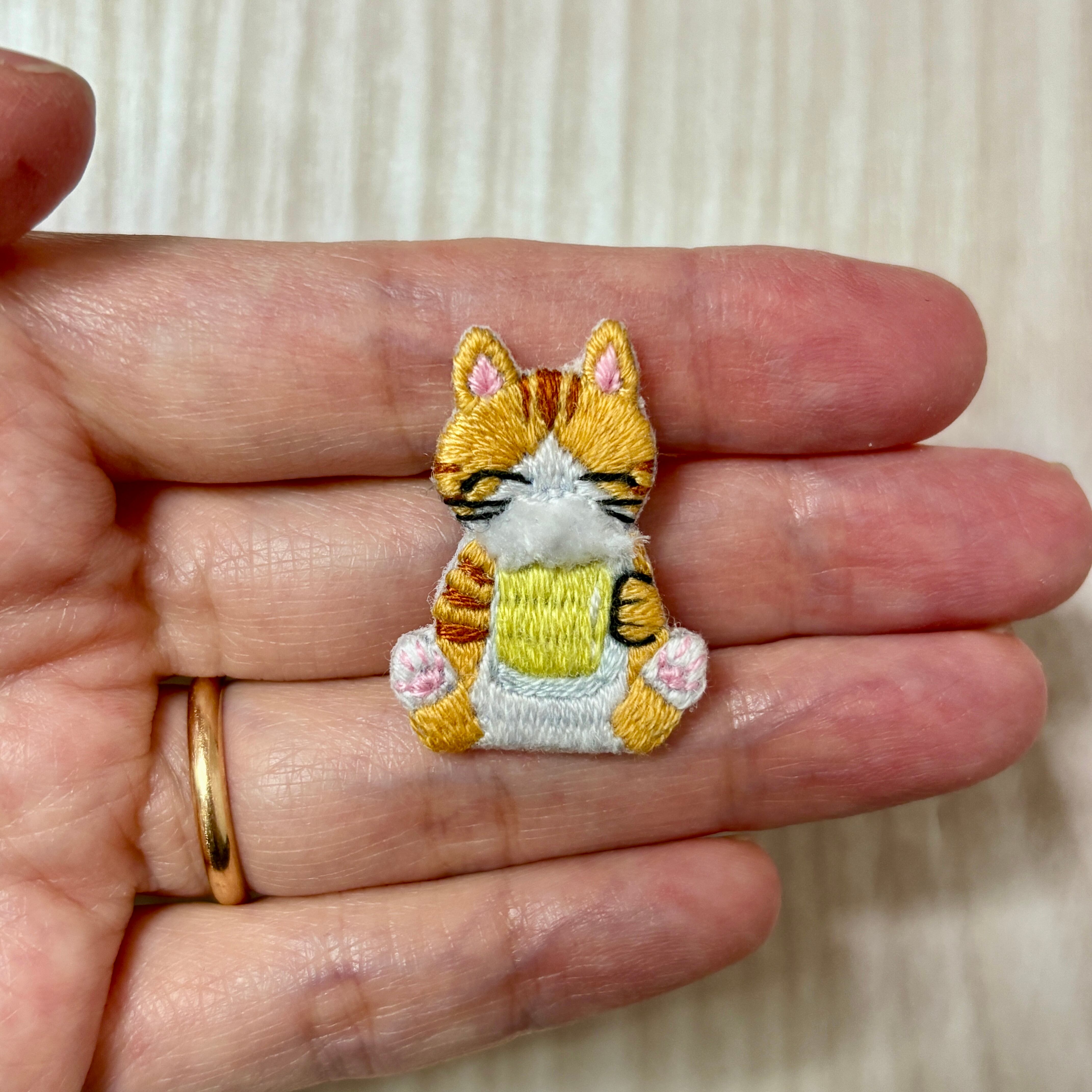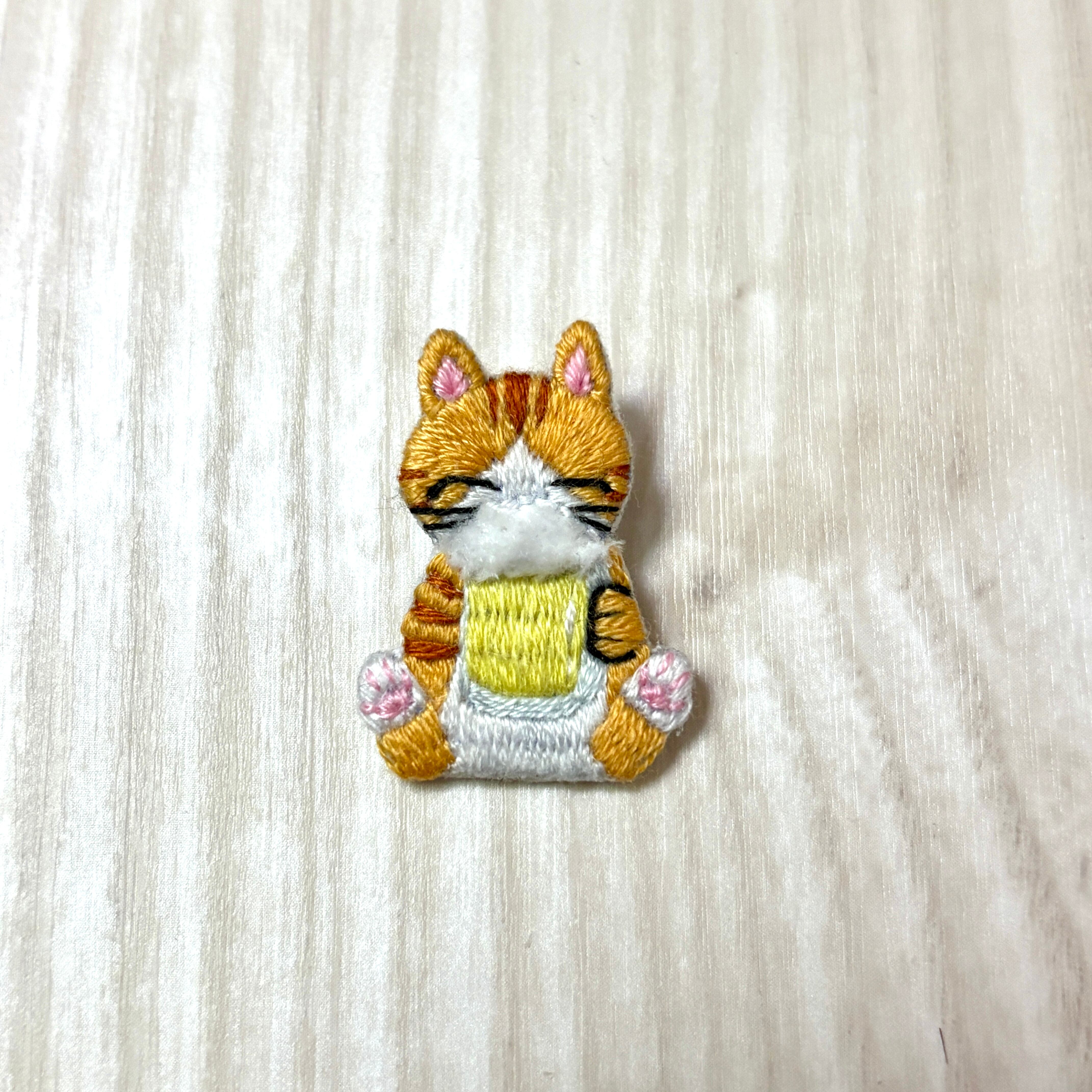刺繡ブローチ【ビールを飲む猫】1.5cmピン