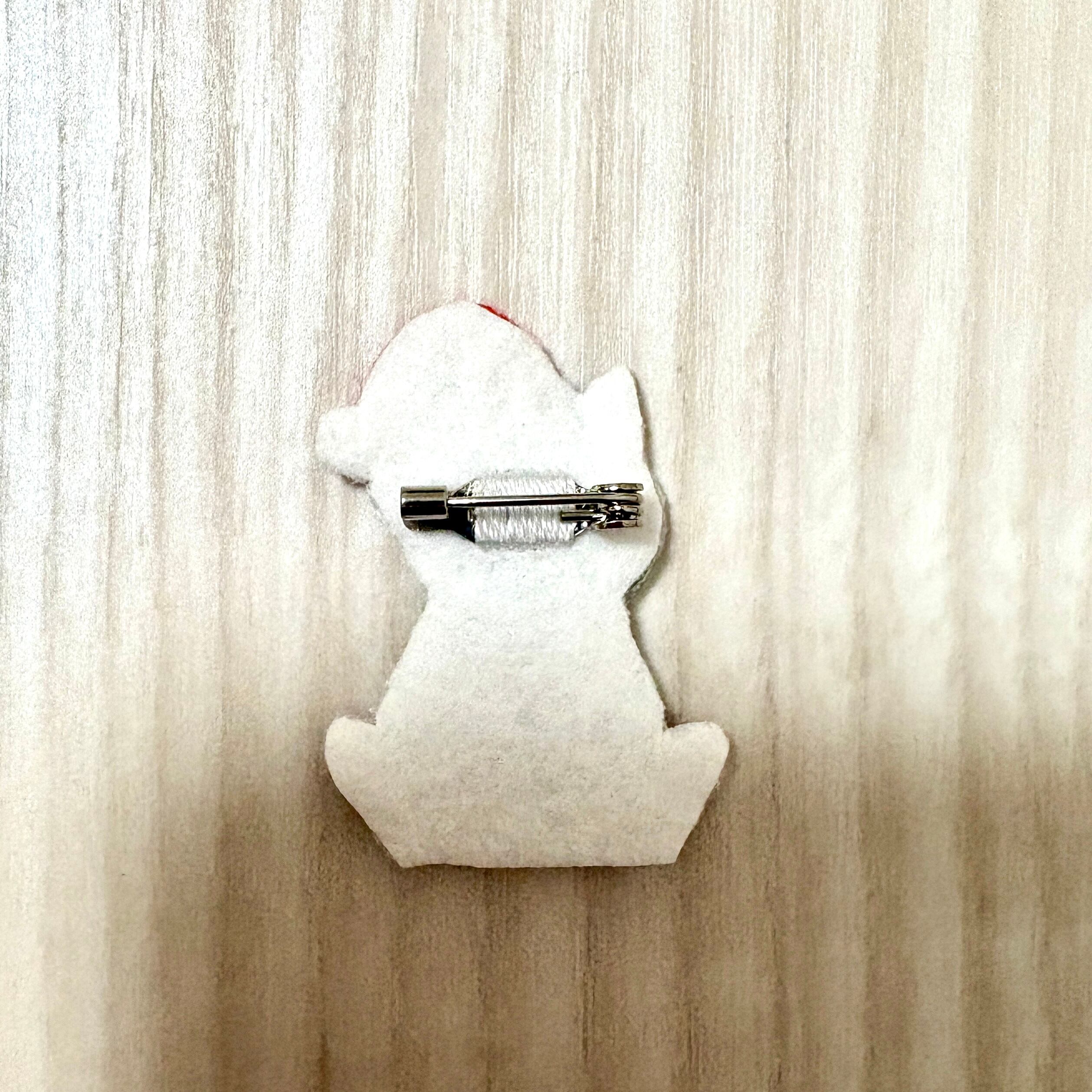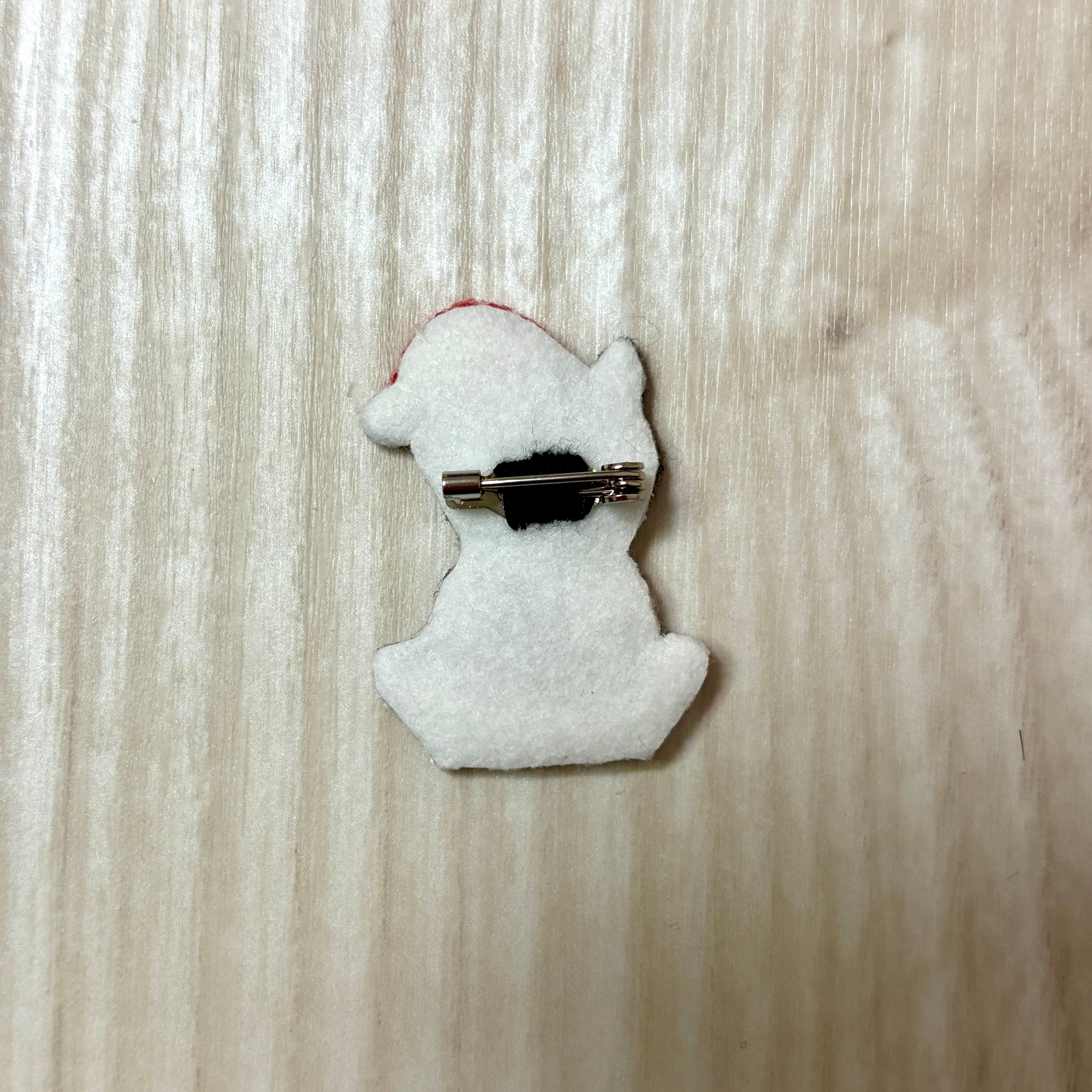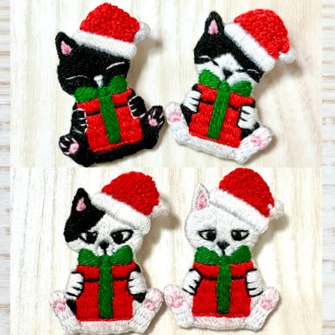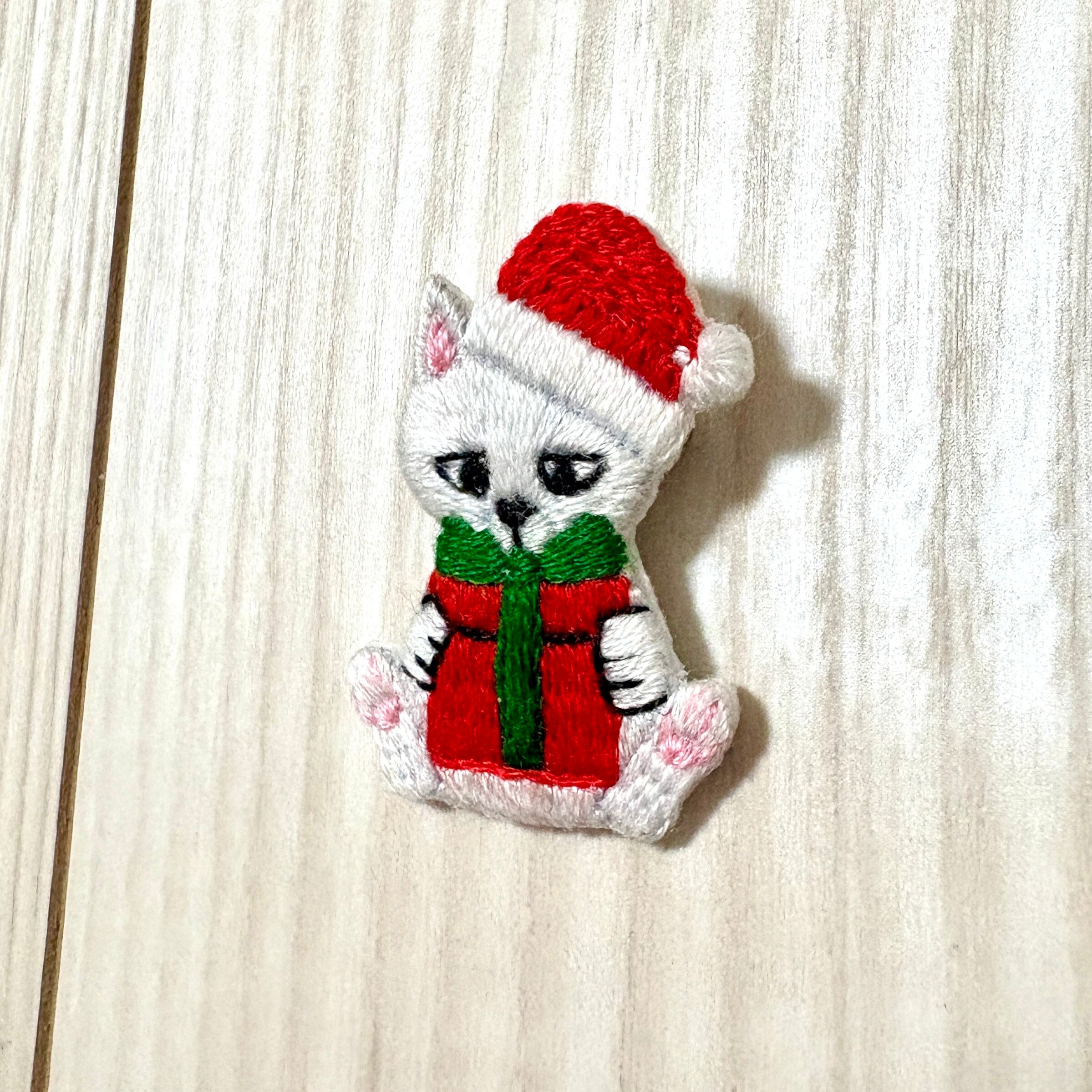 刺繍ブローチ【クリスマス猫】1.5cmピン