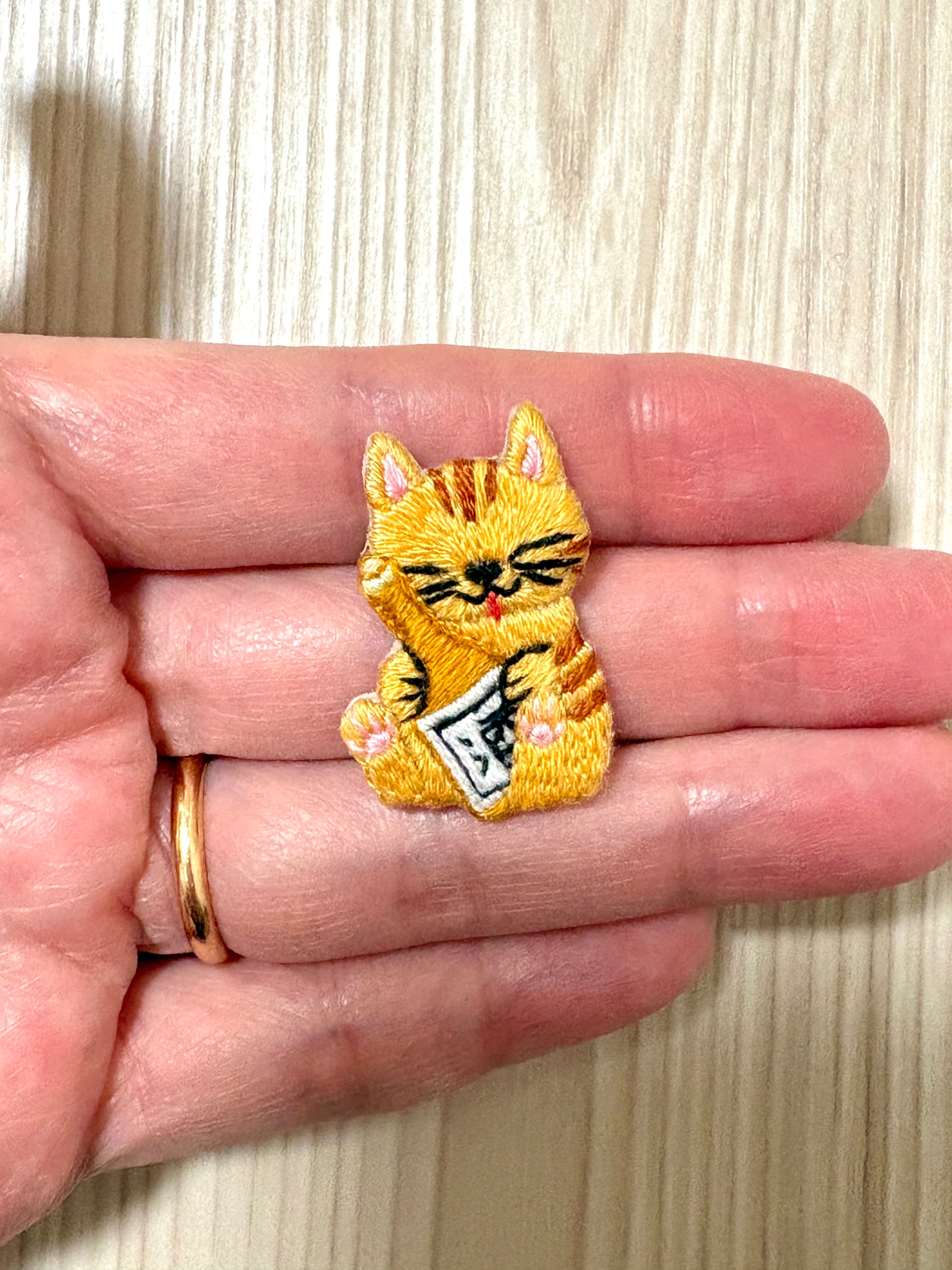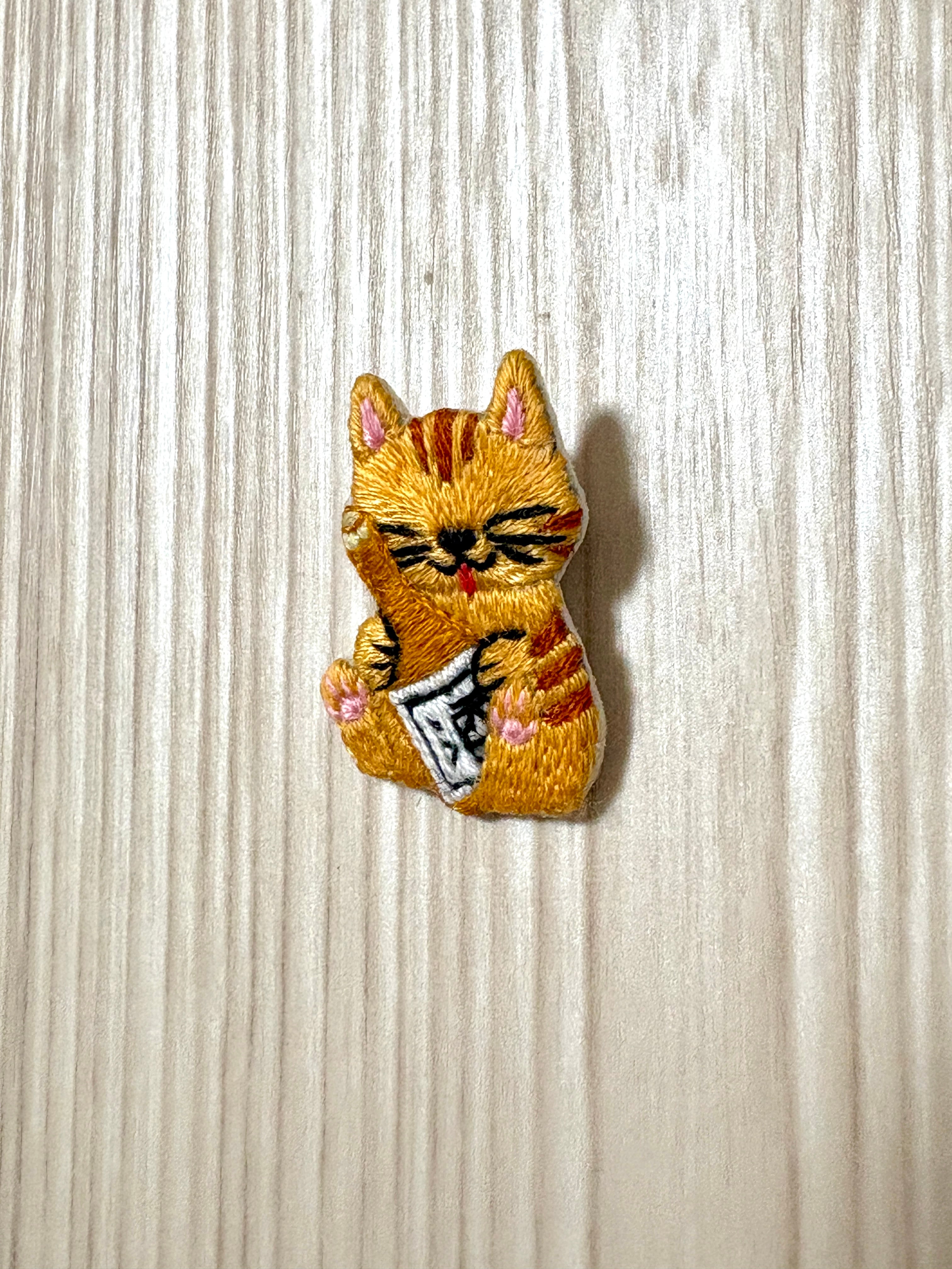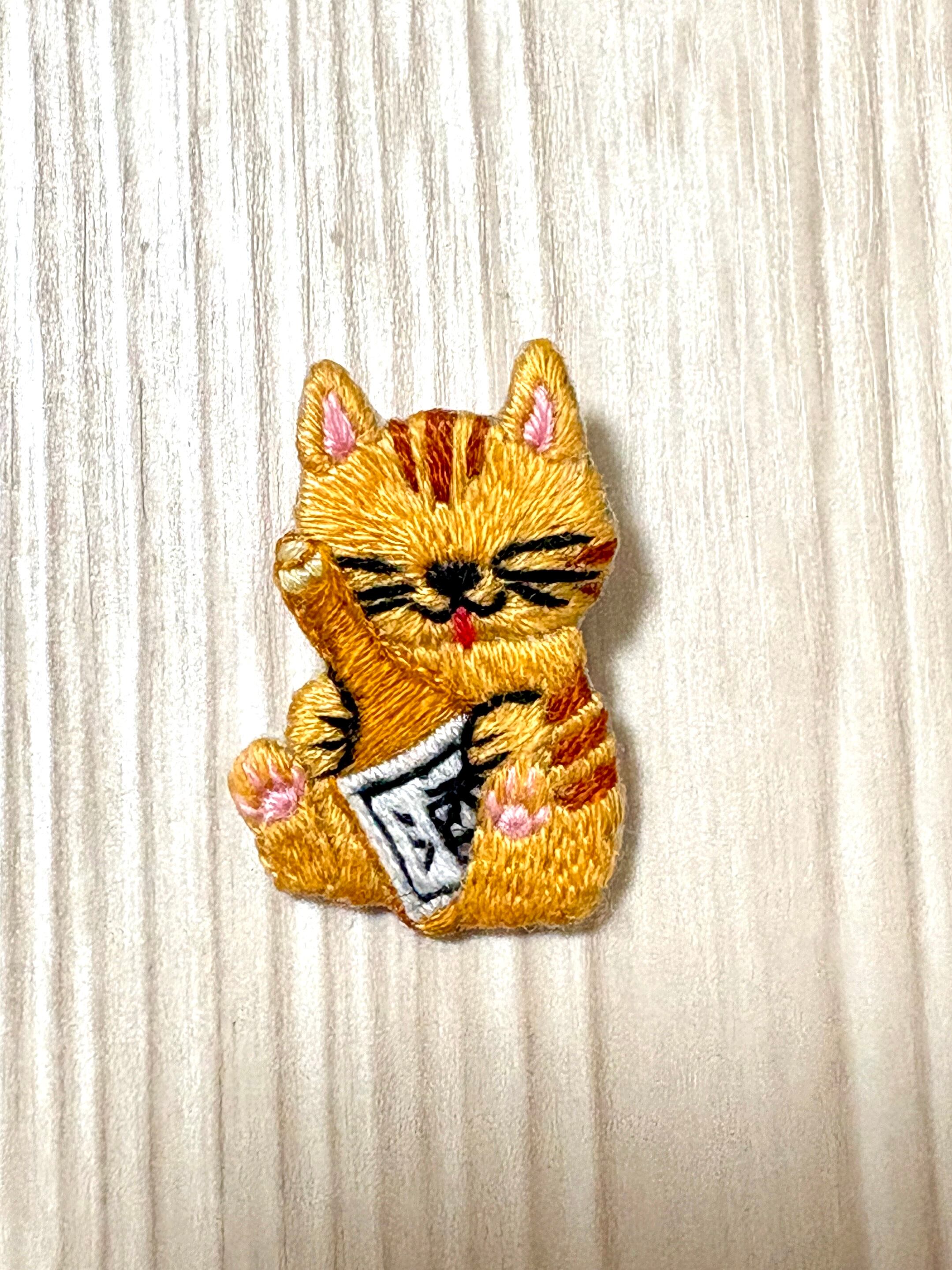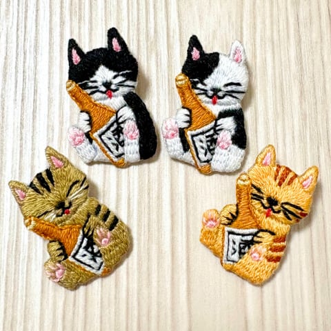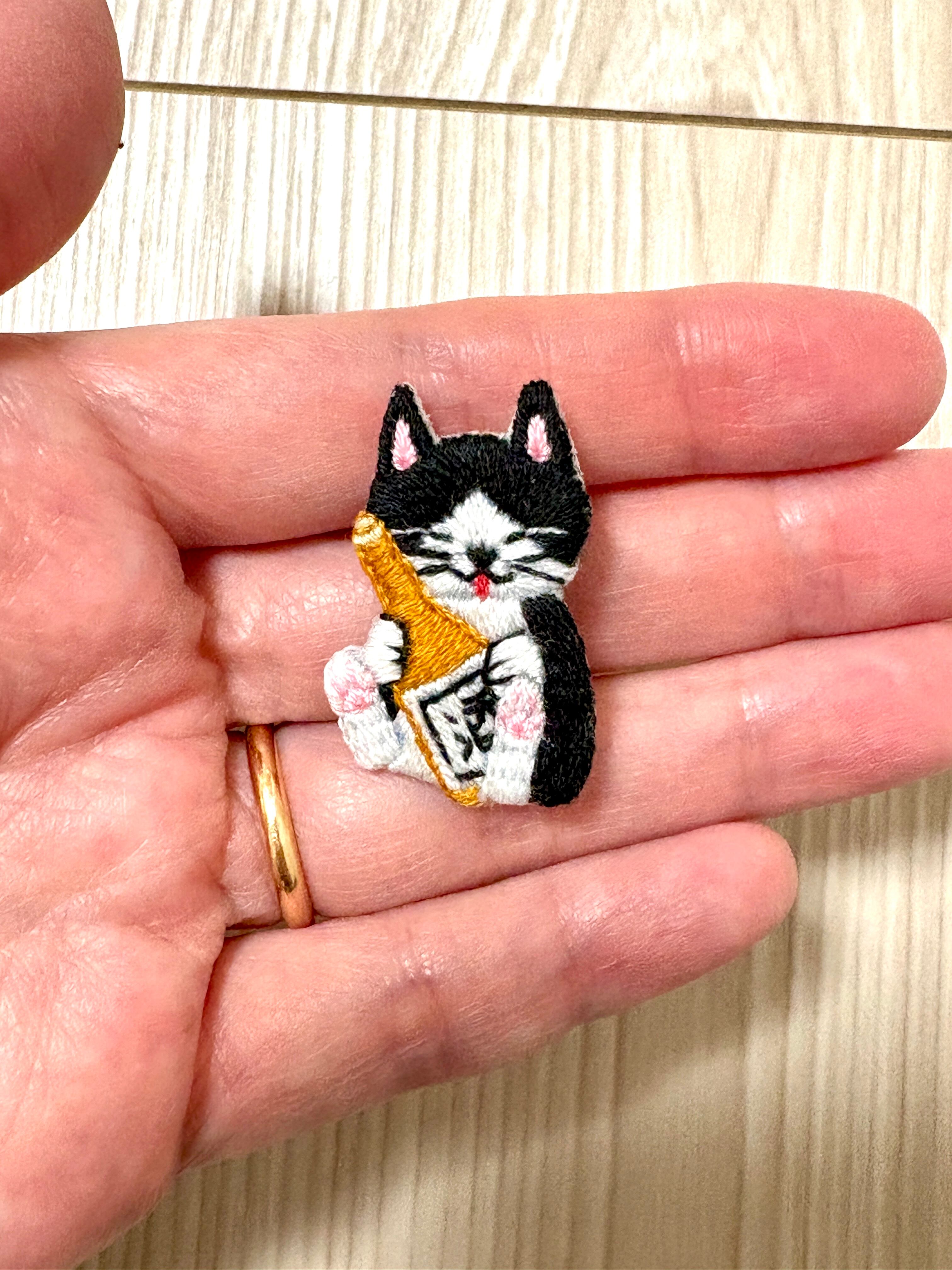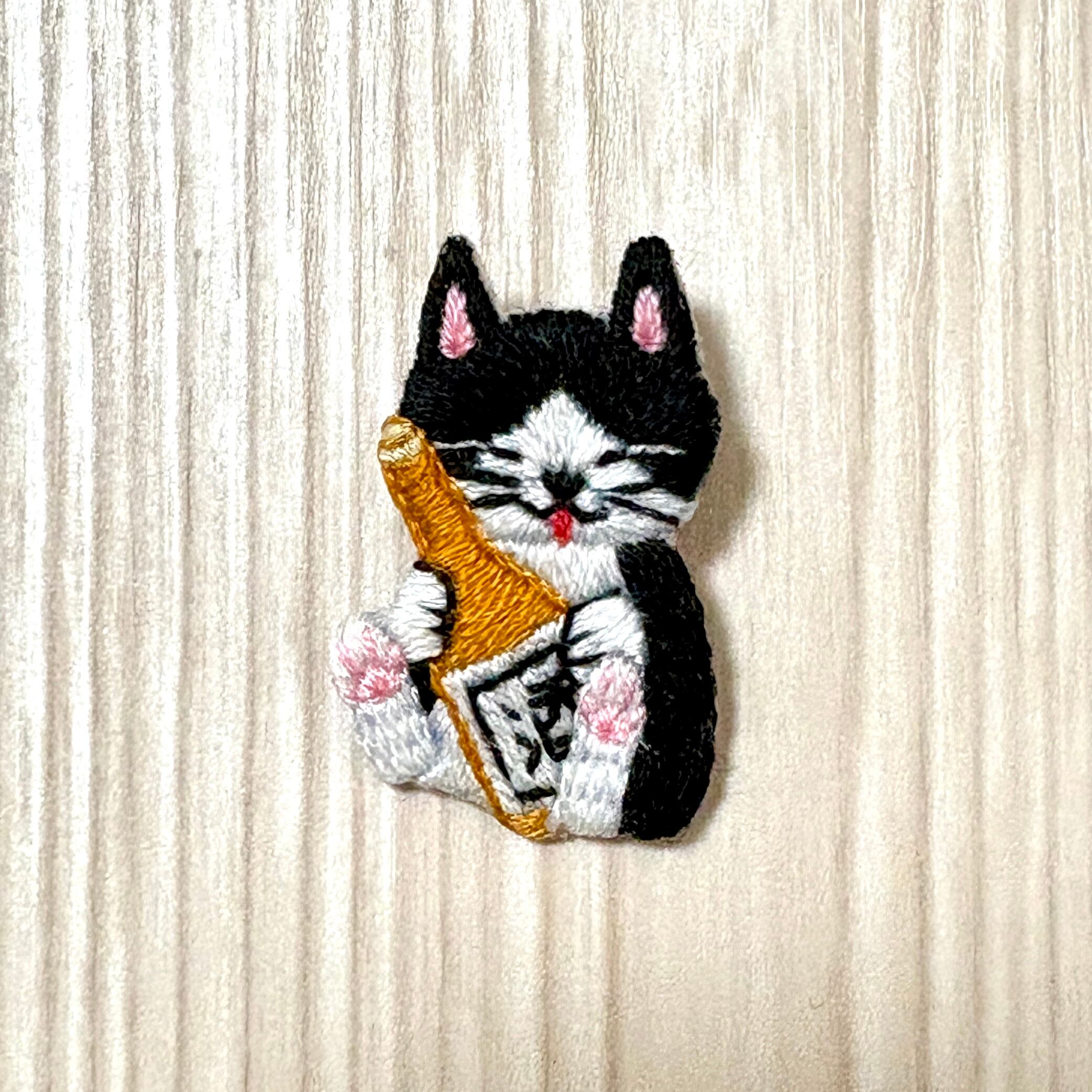 刺繍ブローチ【酒好きの猫】1.5cmピン