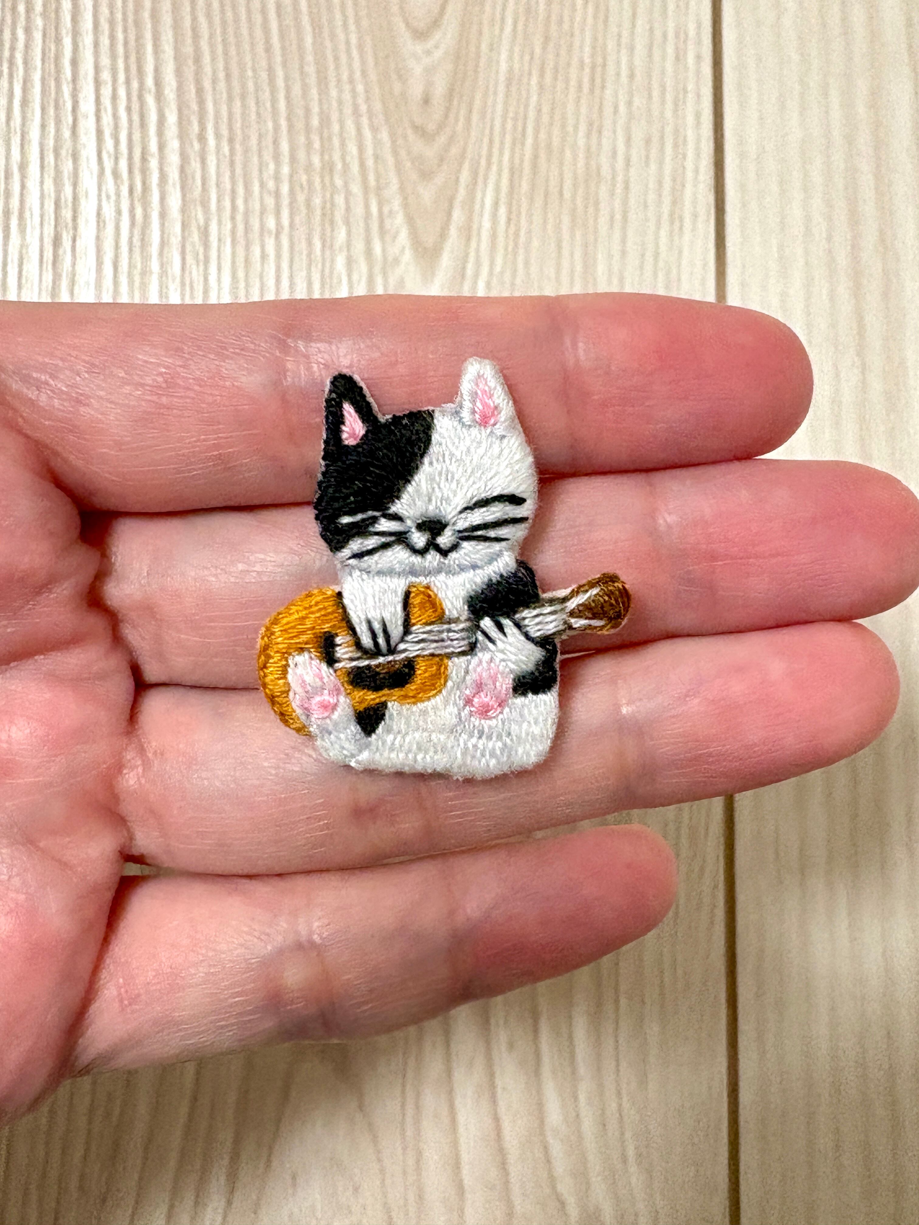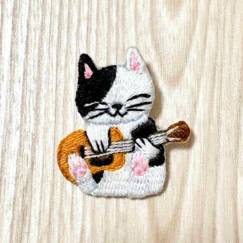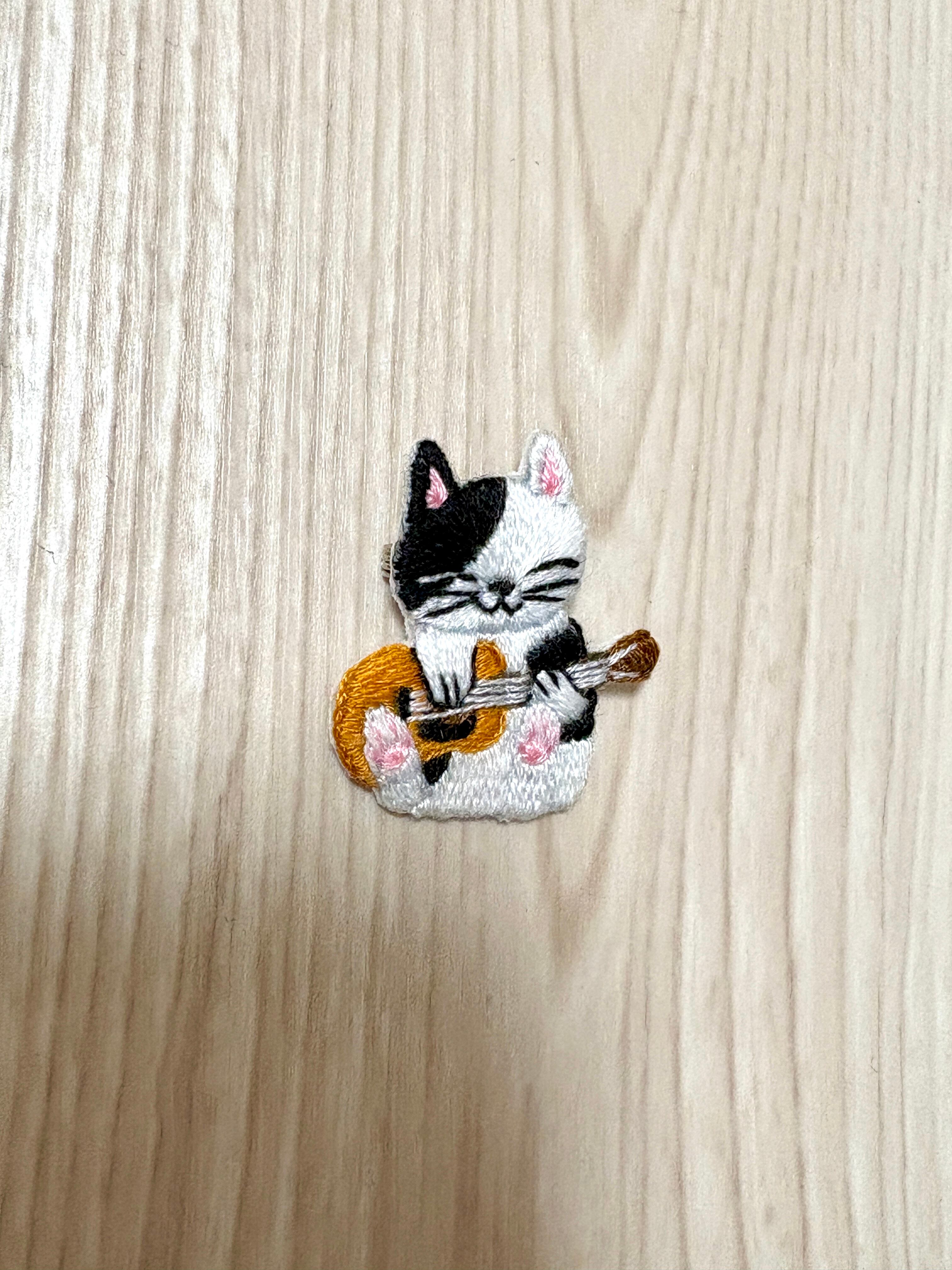 刺繍ブローチ【アコギを弾く猫】1.5cmピン