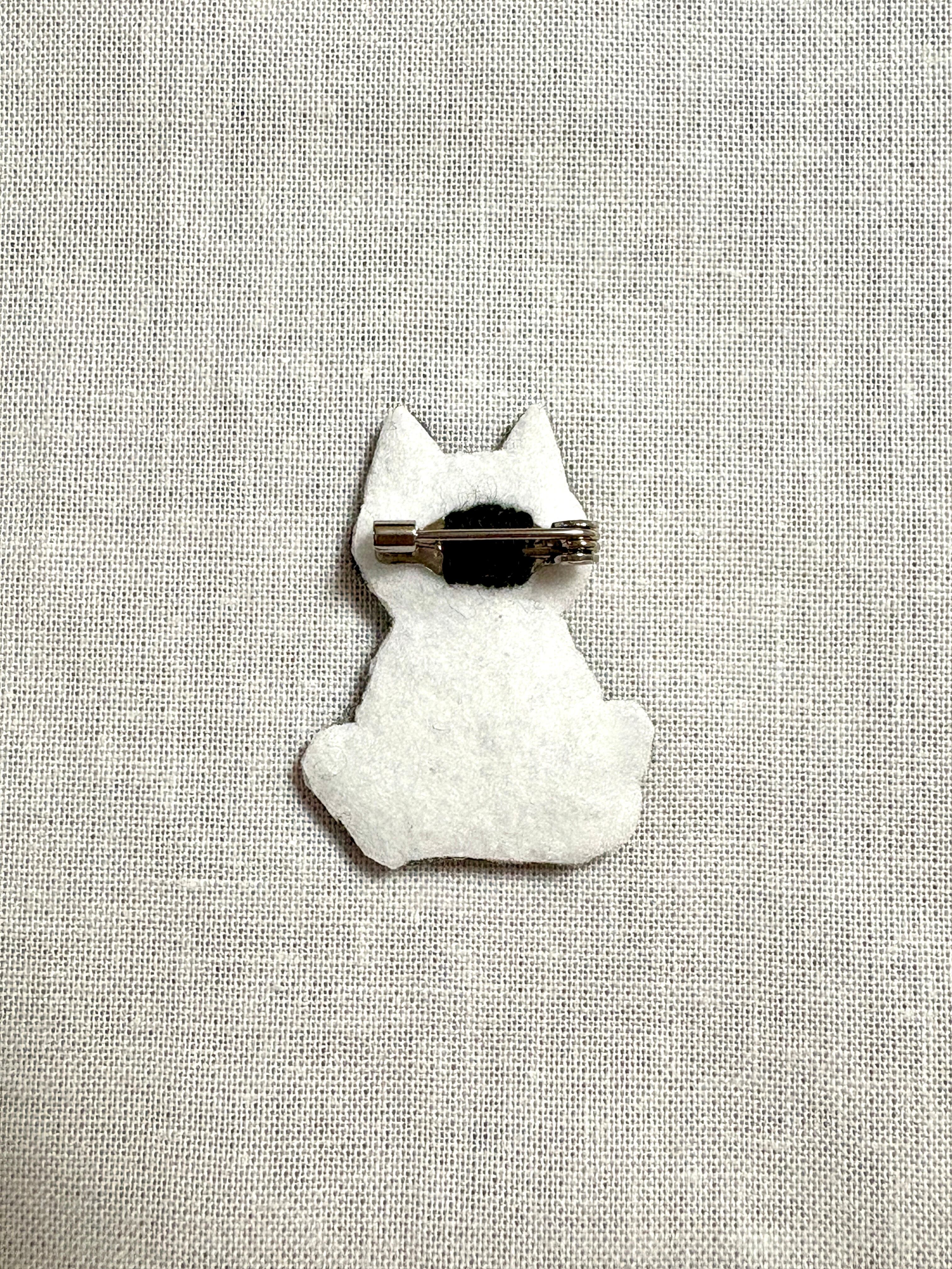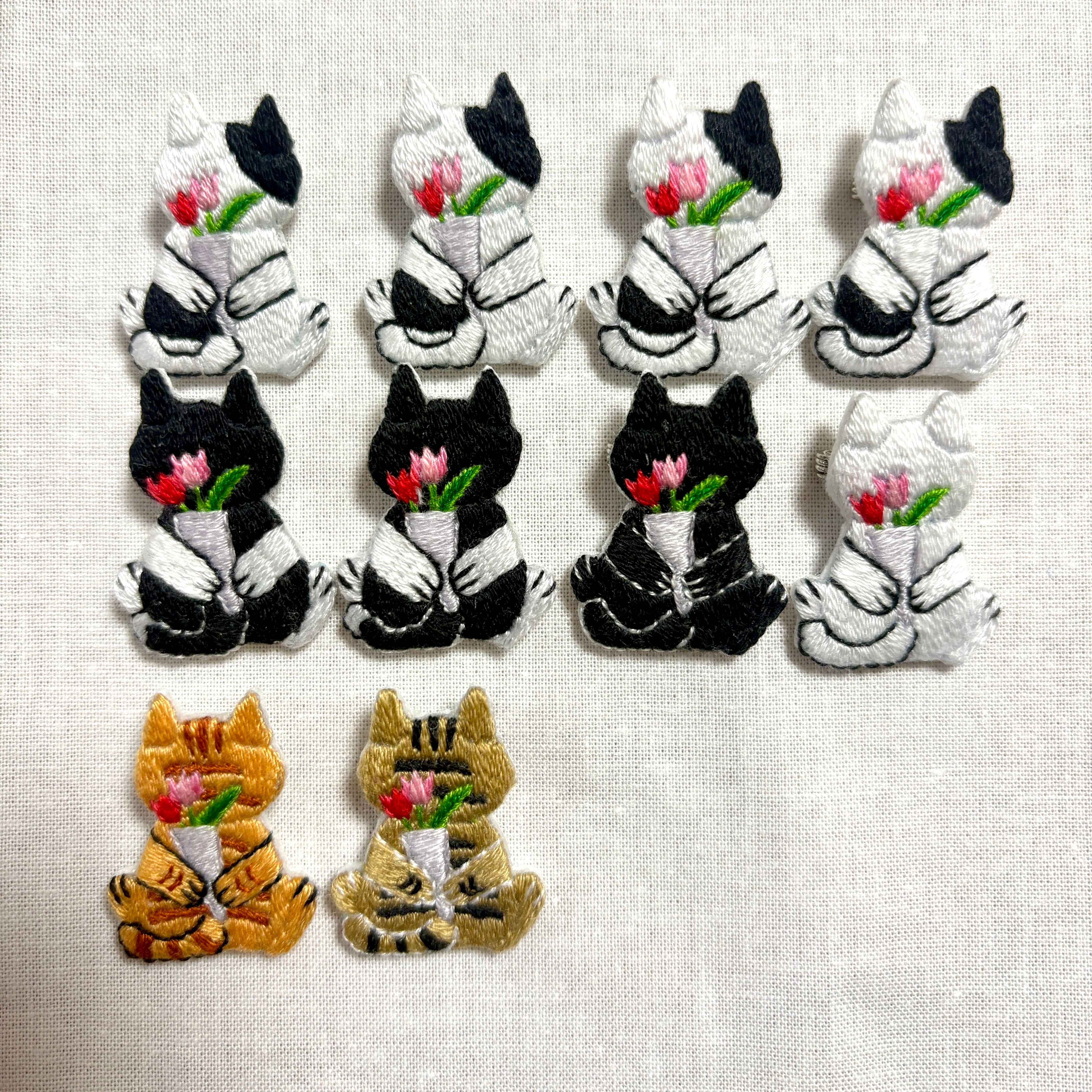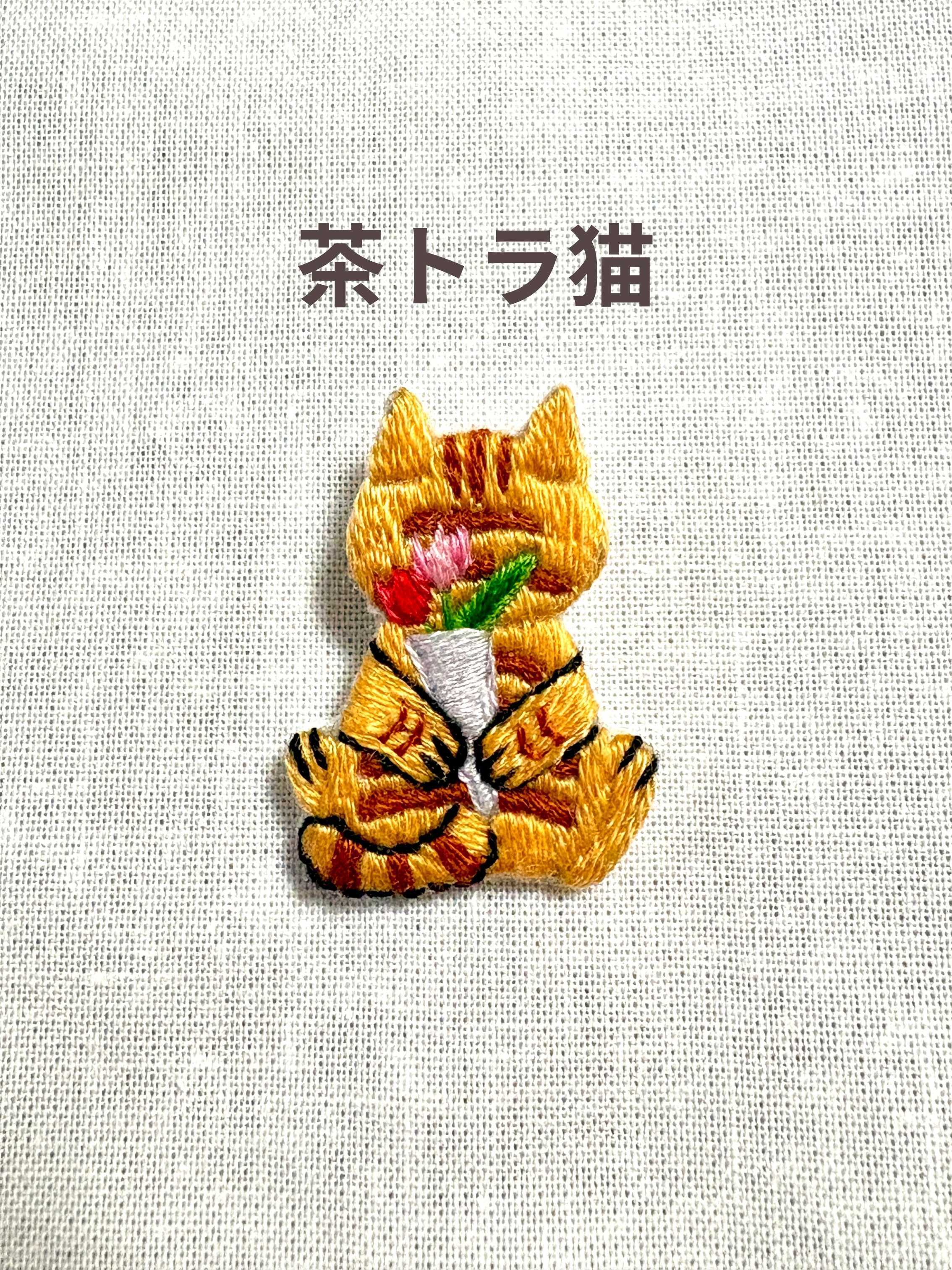刺繍ブローチ【花束を持つ猫】1.5cmピン